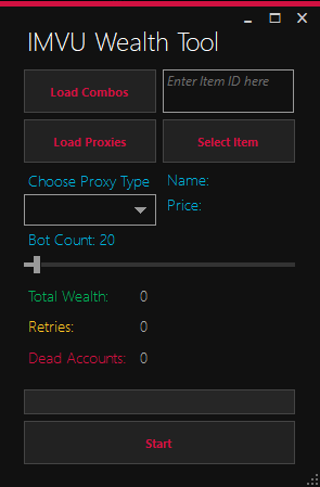Premium Tools / IMVU Wealth Tool« Last post by Bytes on August 17, 2019, 11:54:39 pm »IMVU Wealth Tool ![]() Want to boost you're tiers? Want to use a bunch of dummy accounts or crack accounts to mass buy a product? This programs lets you load your list of accounts and some proxies and type your Product number and buys it with the accounts. If you want to purchase this software click the Buy button, Tell me what program, Ill send you instructions on payment This program is constantly being updated. $10 36